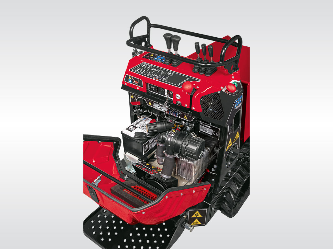 Der DSK 800 D ist mit einem leistungsstarken Dieselmotor sowie einem 10-l-Dieseltank (und Tankanzeige) ausgestattet und verfügt über einen Elektrostarter.